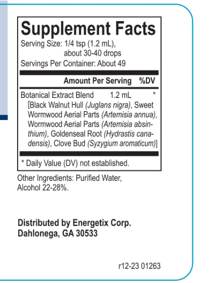 Core Para-V Blend is a spagyrically processed botanical blend featuring Artemisia absinthium (wormwood), Artemisia annua (sweet wormwood), black walnut, clove bud, and goldenseal designed to support an intestinal landscape inhospitable to parasitic worms (helminths), normal liver and gastrointestinal function, and healthy microflora.*
