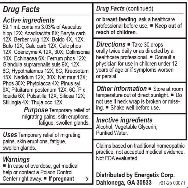 Lymph-Tone II® is a homeopathic combination formula for long-standing symptoms such as fatigue; migrating pains; blinding headaches; swollen glands; painful, stiff joints; lower back pain; aching muscles and joints; itching skin; warts; hemorrhoids; hair loss; night sweats; nerve pain.